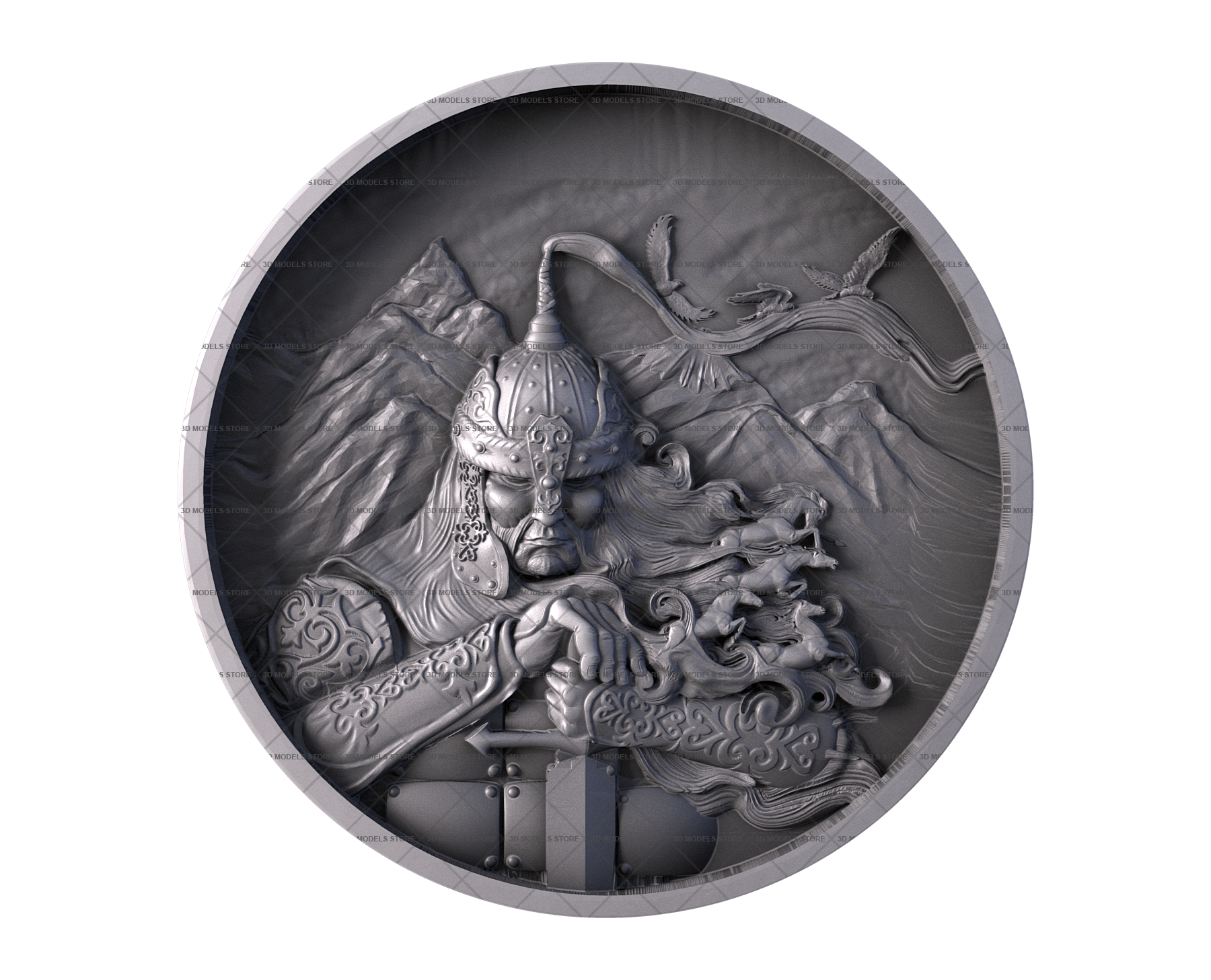 Khakas Hero in a Round Frame brlf_stl_0407 - 3d models (stl)